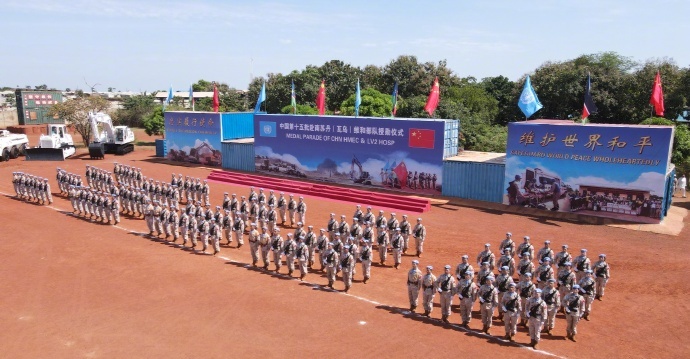 当地时间10月28日,多名来自我维和工兵分队及医疗分队的中国章300余名官兵荣获联合国颁发的“和平荣誉勋章”,
