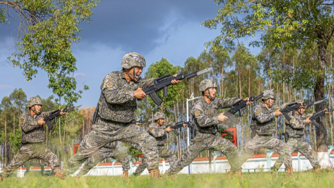 热火中武警练兵官兵朝天